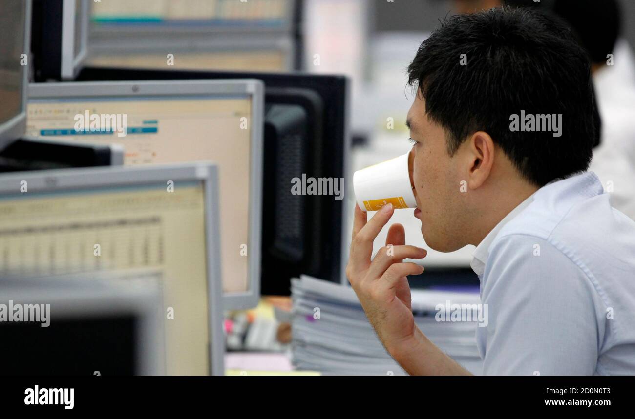 A Foreign Currency Dealer Of The Korea Exchange Bank Looks At A Screen At The Bank S Dealing Room In Seoul August 12 2011 South Korean Stocks Reversed Earlier Gains To End Lower